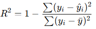 - Range: 0 to 1 (can be negative if model performs worse than predicting the mean).
